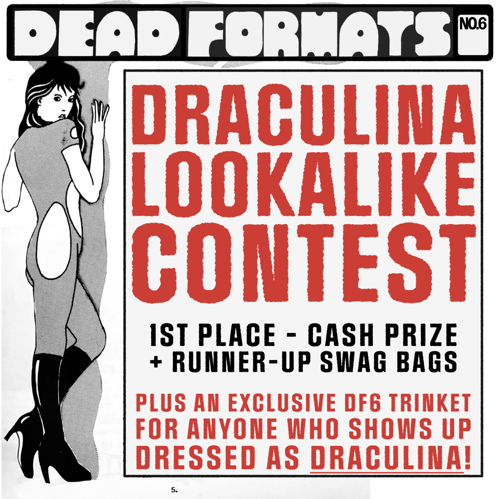 To celebrate the character created by Hugh Gallagher and the namesake of his seminal horror movie magazine, we are pleased to announce the DRACULINA LOOKALIKE COSTUME CONTEST! Cash prize for first place and STACKED swag bags for runners-up. PLUS SPECIAL DF6 TRINKET for anyone comes in costume.